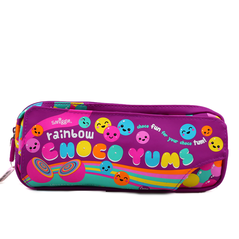Australian Smiggle Classic Pink Gum Purple Rainbow Limited Double Laced Bag Student Cram Pencil Bag