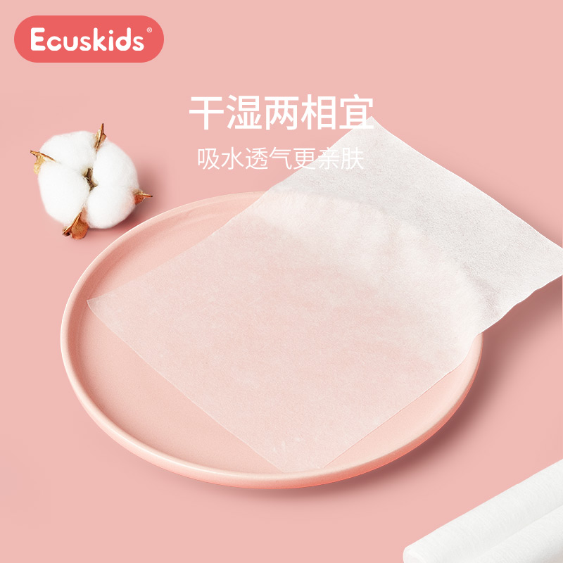 Japan Aikasi ecuskids cotton soft towel baby newborn baby disposable wet and dry towel 100 pumping *3