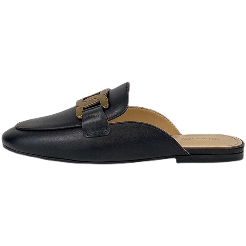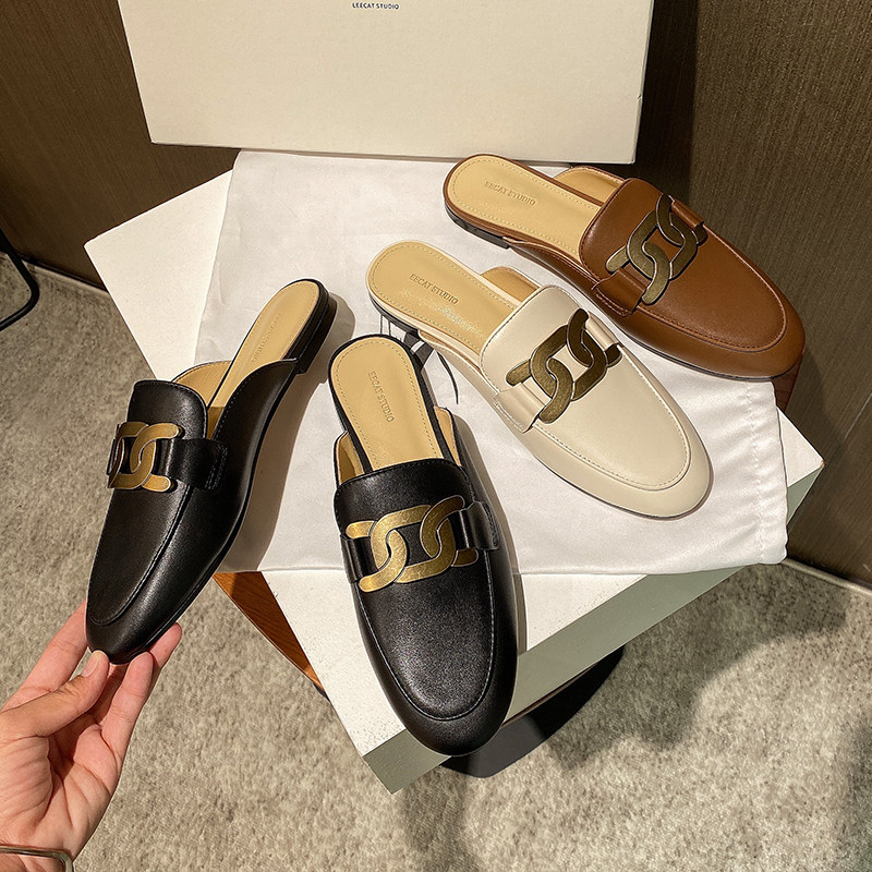 Baotou half slippers women's summer outer wear 2021 new fashion leather flat-bottomed Muller slip-on shoes