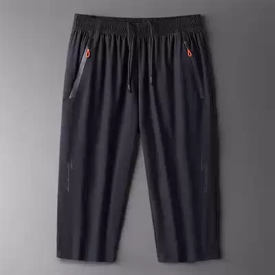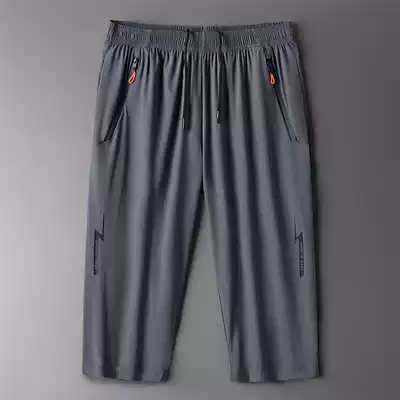Summer ice silk three-point pants men's sports shorts thin loose straight large size pants men's quick-drying leisure five-point pants
