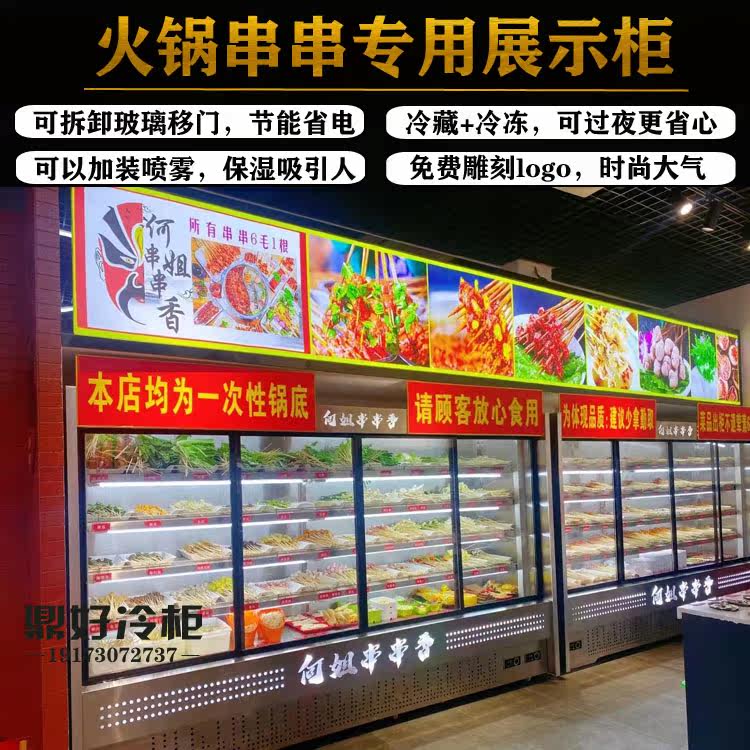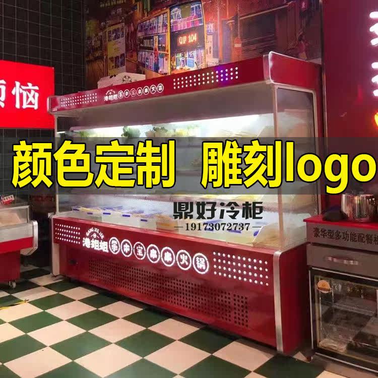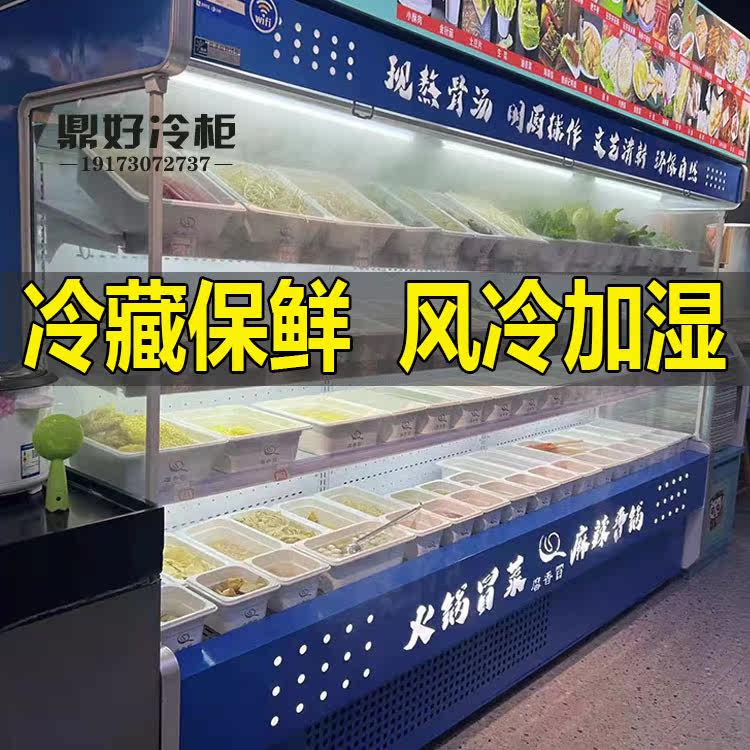 Stainless Steel Spray String Hot Pot Air Curtain Cabinet Refrigerated Display Cabinet Glass Door Refreshing of Vegetable Commercial Standing Ice Chest