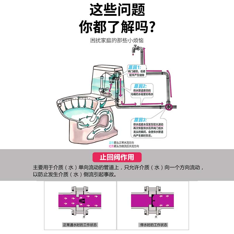One-way check valve toilet water pipe toilet anti-water meter check valve water heater 4-point return water check valve