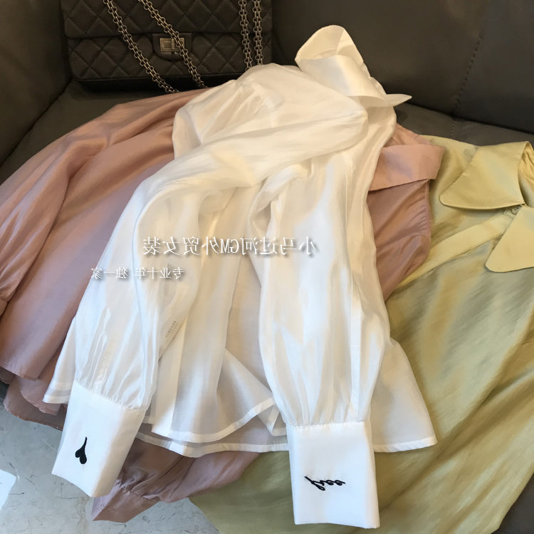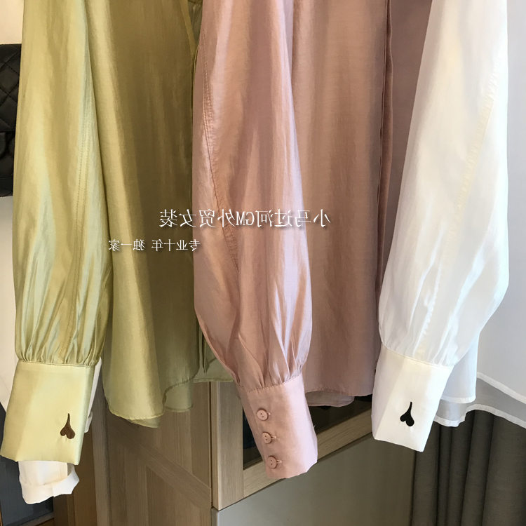 Brand discount store mall Withdrawal Women's Foreign Trade Cut Mark Extremely Simple Wind Light Silk Slip Cuffs Embroidered Shirt Woman Autumn