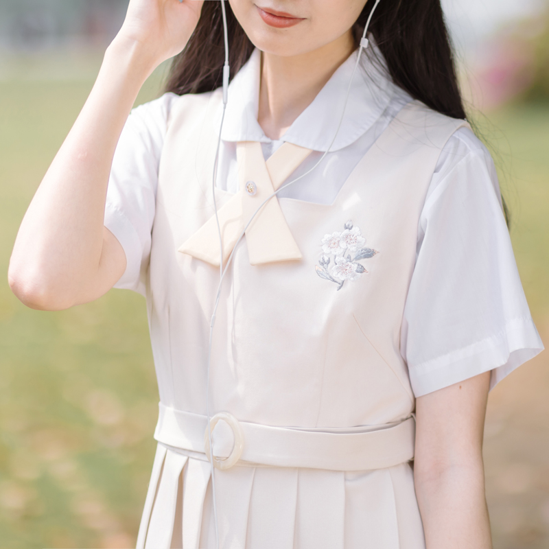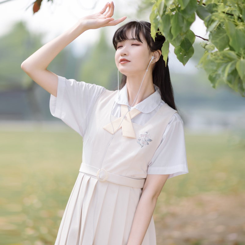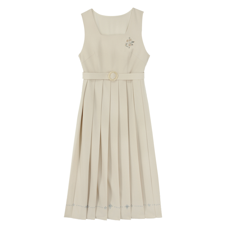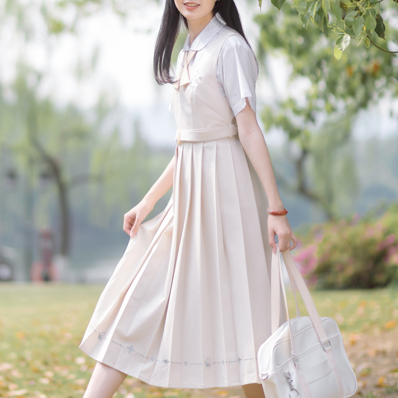 Chuandai Time: Study Travel Mid-Length Pleated Vest Skirt College Style Solid Color Embroidered Long Skirt