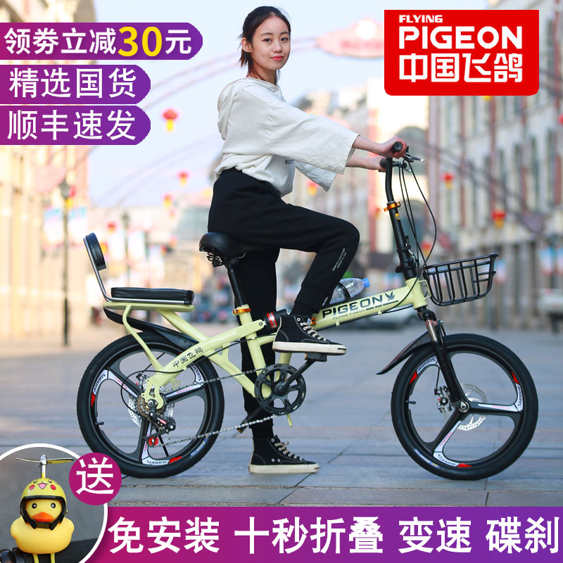 Flying pigeon folding bike Adult variable-speed portable male and female type Student shock absorbing disc brake bike able to put aside trunk
