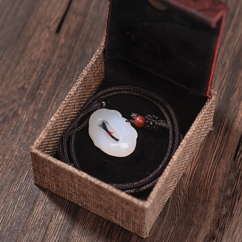 Chalcedony auspicious lock (pendant version) linen gift box Jade chalcedony auspicious lock (necklace model) linen gift box