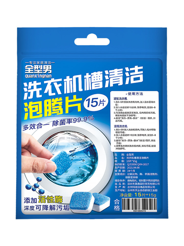 15 pieces of drum washing machine tank cleaning agent effervescent tablets fully automatic cleaning block sterilization effervescent tablets decontamination pack household
