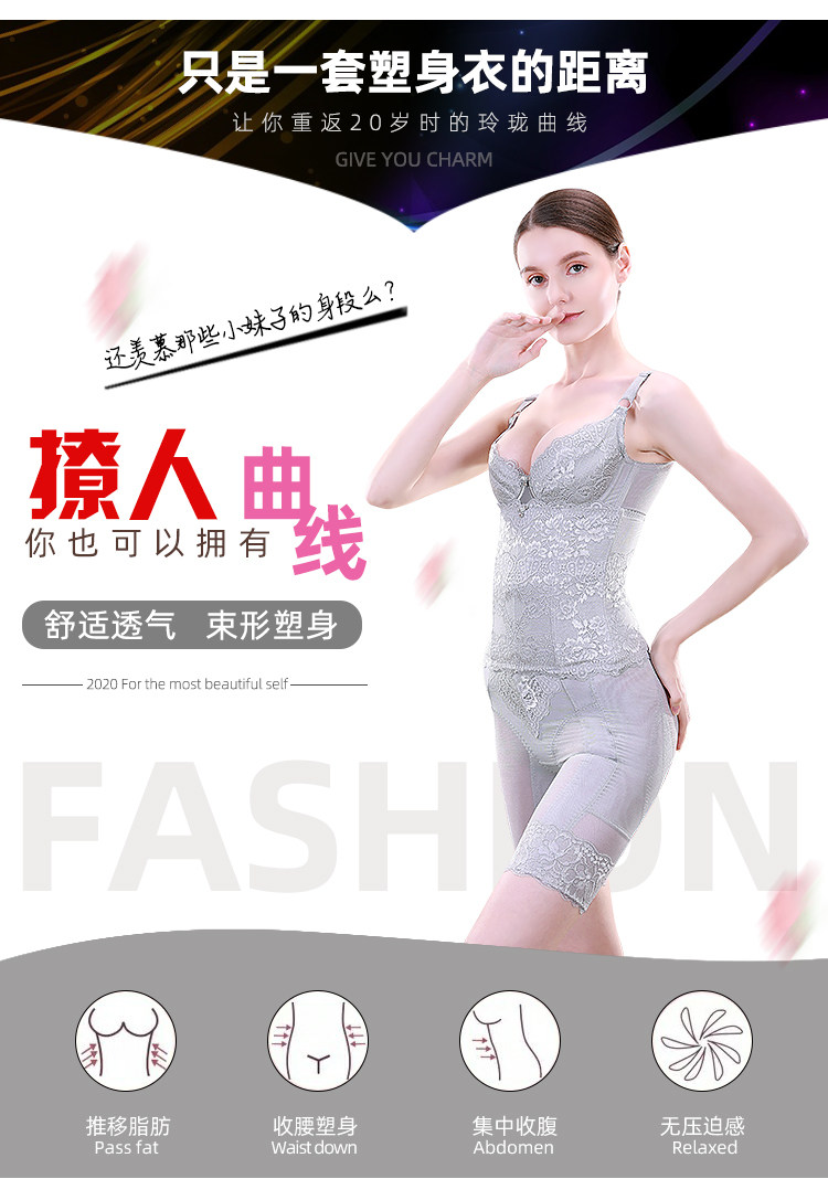 Grey three - piece set (long - bra chest lumb plastic pants) long - gray chest - waist plastic pants
