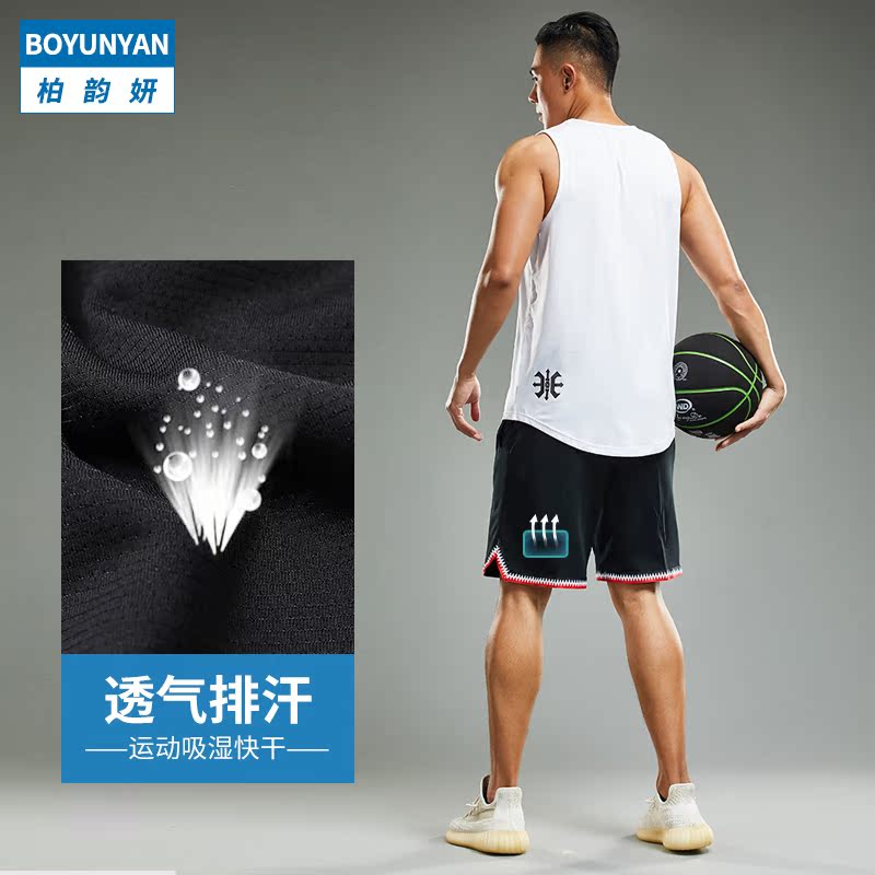 Ice silk short-sleeved sports suit men's summer thin running clothes fitness clothes quick-drying breathable large size loose leisure tide