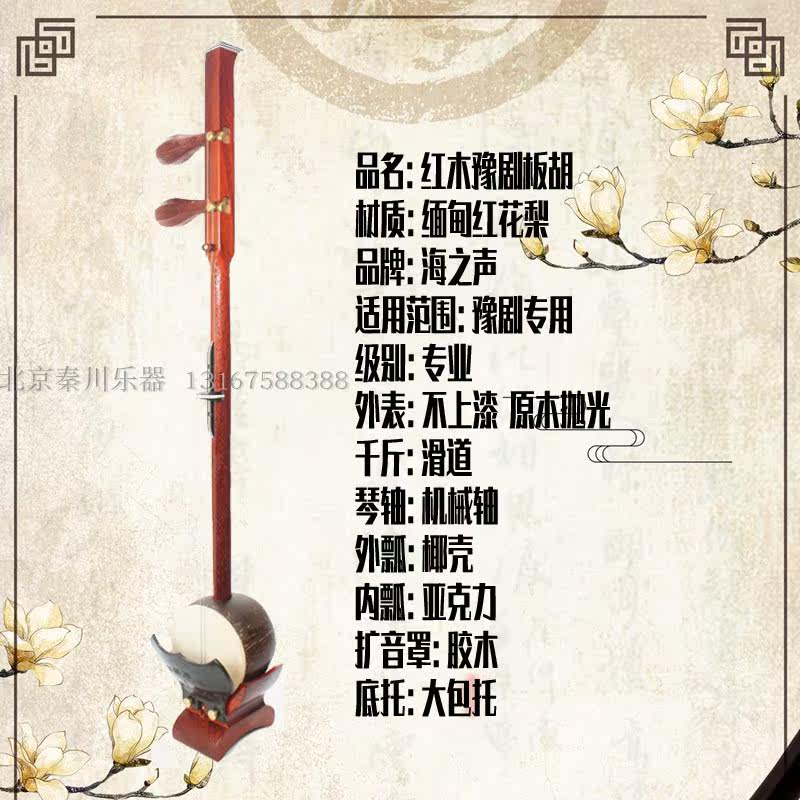 Red Wood Red Flowers Pear Professional Henan Yu Opera Board Hu Musical Instrument