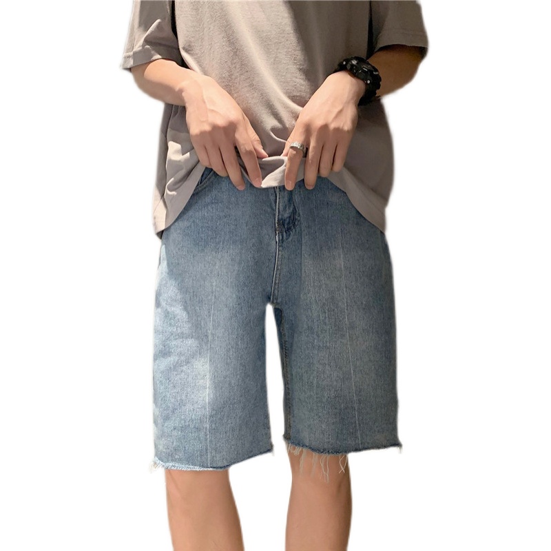 Denim Shorts Male Tide Card Summer Thin 100 Lap Loose Straight Barrel 50% Pants Port Wind Retro Casual Mid Pants Hair Side