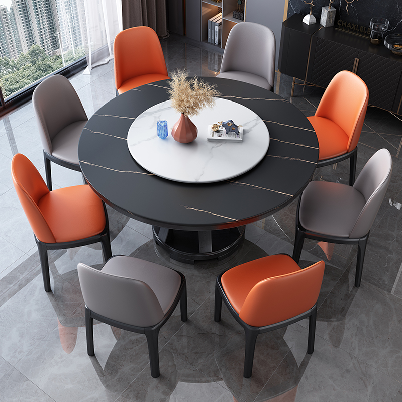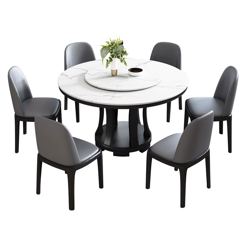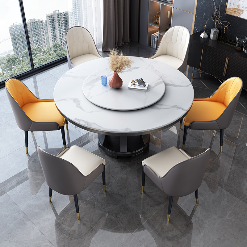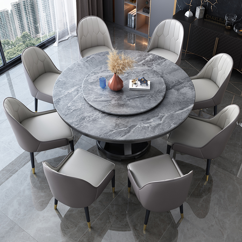 Light luxury rock plate dining table and chair combination Modern simple marble round table Solid wood household small apartment round with turntable