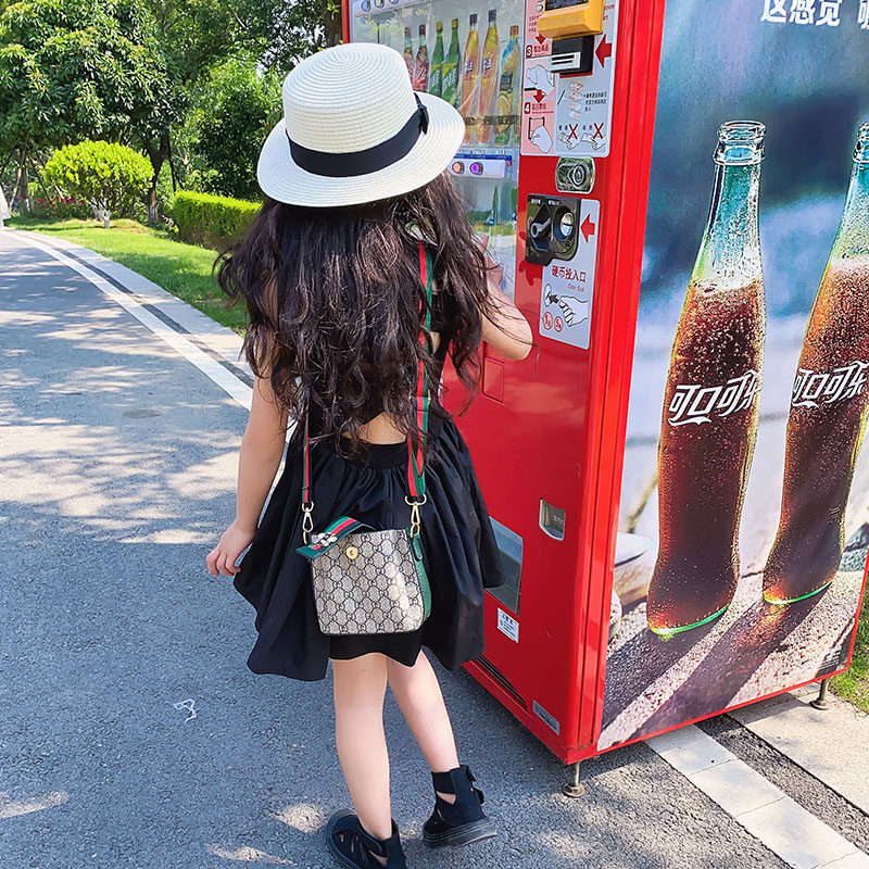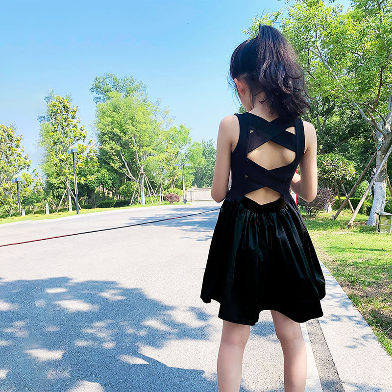 Korean girl dress 2022 new style fried street children's dress girls summer black backless camisole skirt princess dress