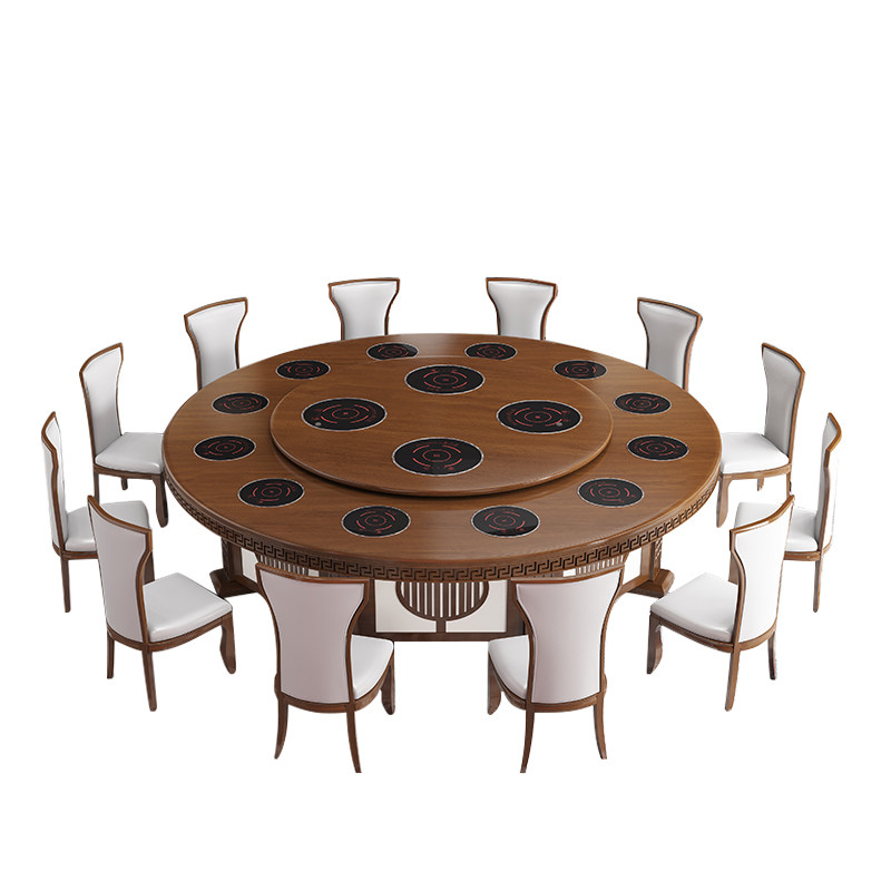 Hotel electric dining table and chair combination solid wood new Chinese-style household large round table hotel box banquet revolving hot pot table