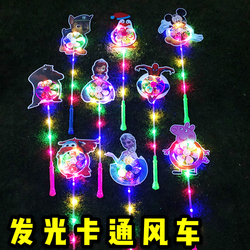 Net Red Light Windmill Outdoor Cartoon Windmill Ground Stall Square Park Children's Toys Seven Colorful Windmills Luminous Flash