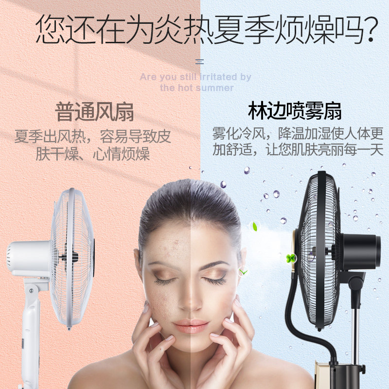 Forest edge spray fan floor-standing household mute remote control humidification cooling shaking head industrial blowing water cooling atomizing electric fan