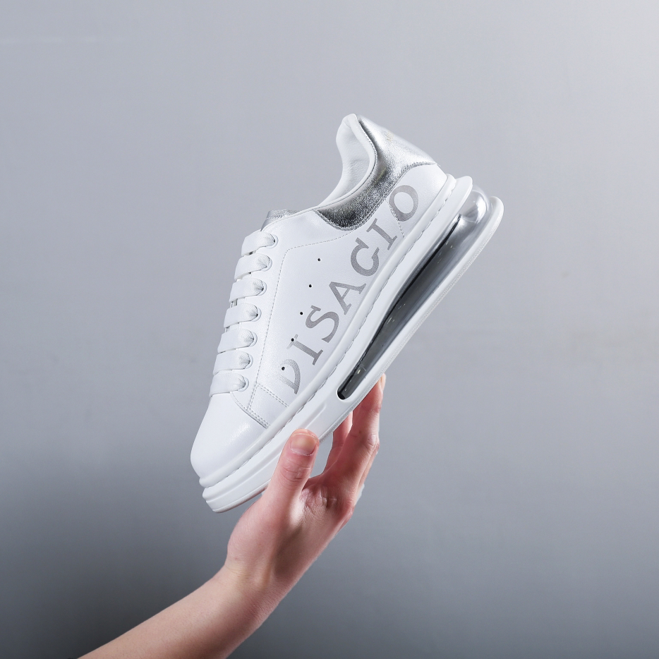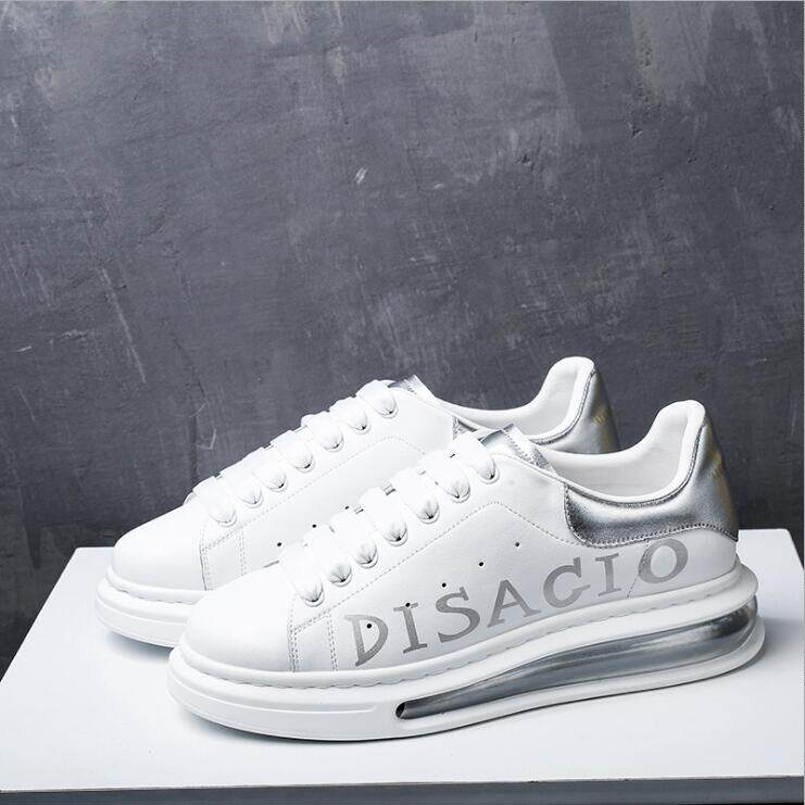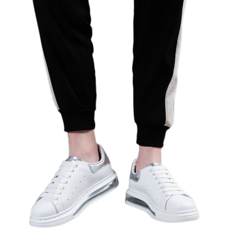 European Station McQuint Genuine Leather Air Cushion Small White Shoes 100 Hitch Breathable Couple Embroidery Casual Thick Bottom Heightening Plate Shoes