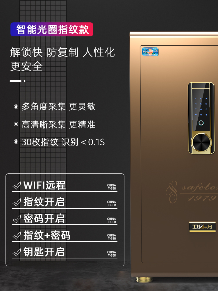 National standard CSP certification 45CM-coffee gold-key password fingerprint (WIFI smart control) National standard CSP certification 45CM-noble black-key password fingerprint (WIFI