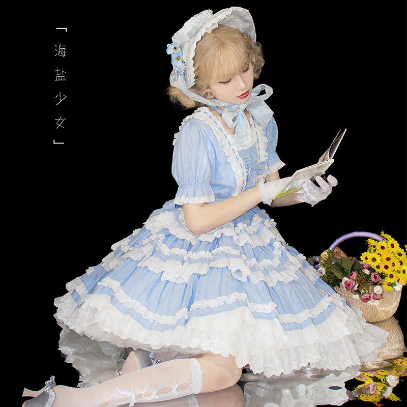 (Sea Salt Teenage Op) with puji original design petal heavy sweet system of medieval doll sense lo skirt summer