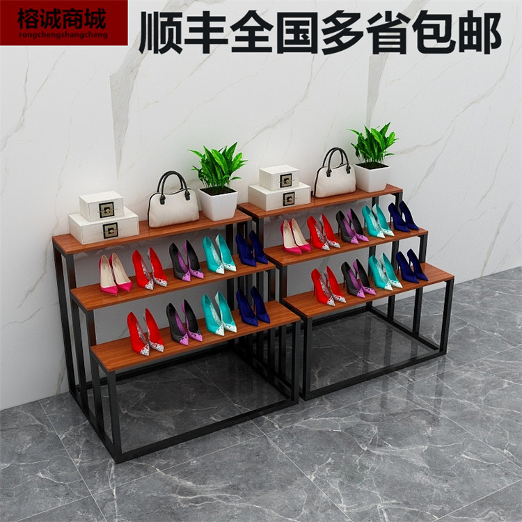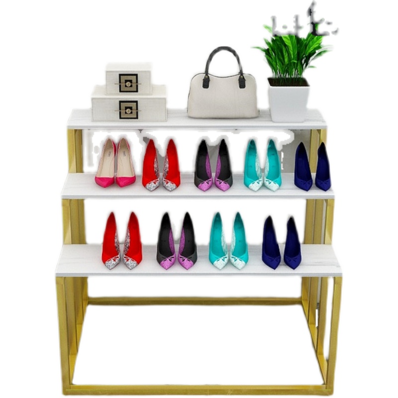 Three-layer gold rack clothing store island rack display rack ladder shoe bag rack water table bag rack shelf