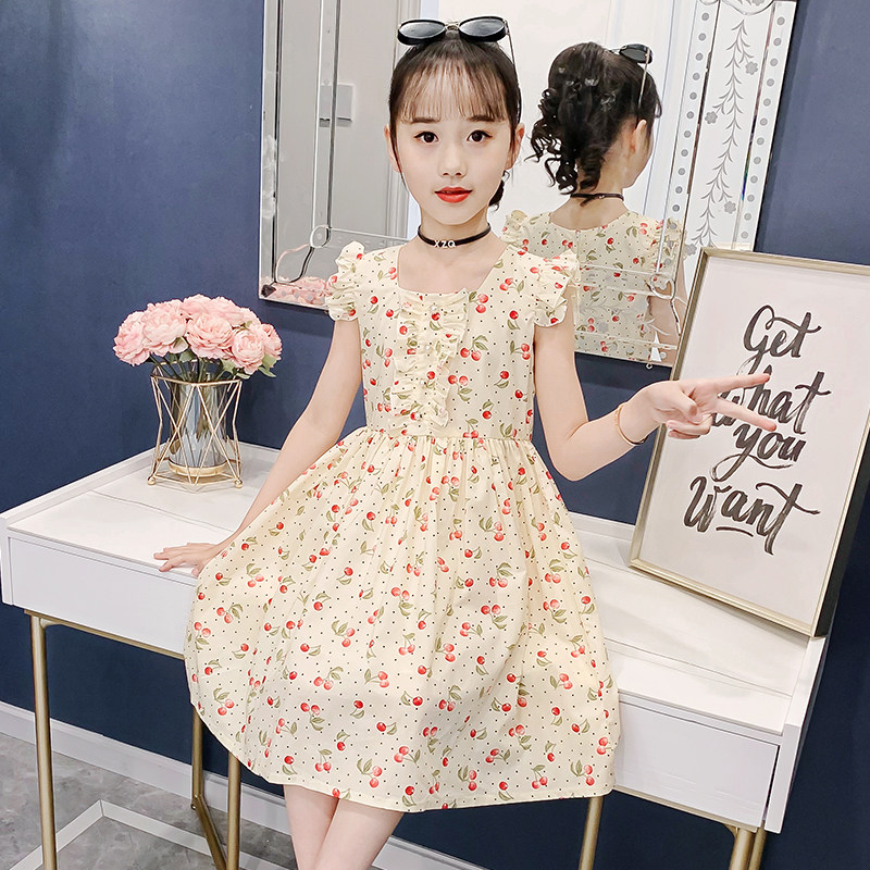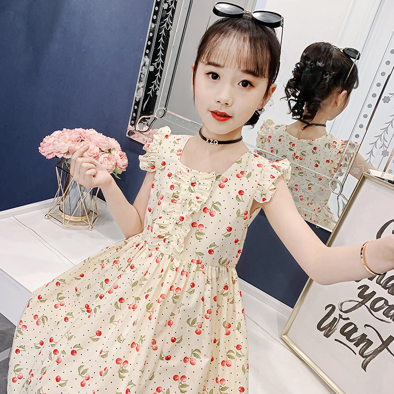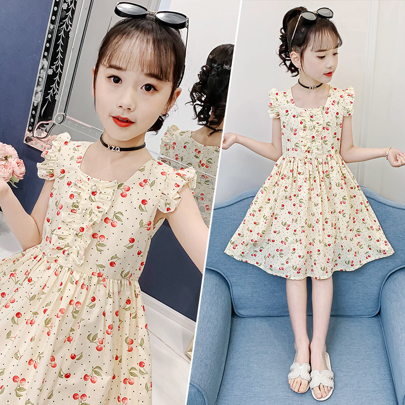 Net red girls popular dress summer dress 2022 new children's spring and autumn skirt girl big boy western style cotton long skirt