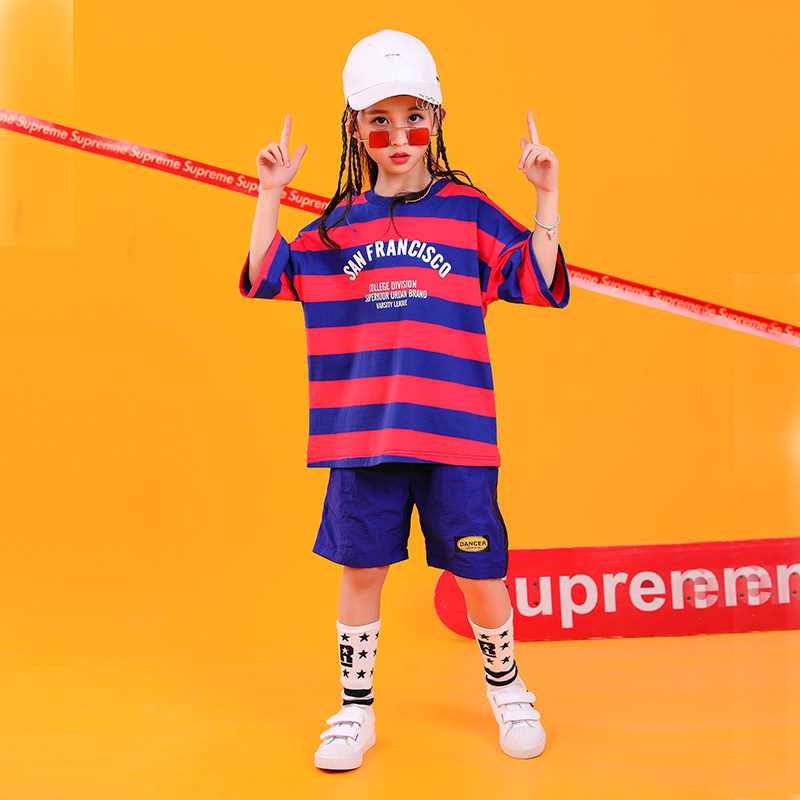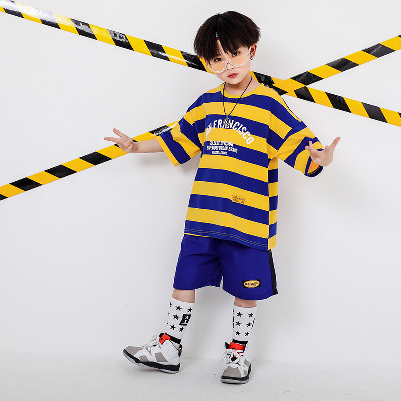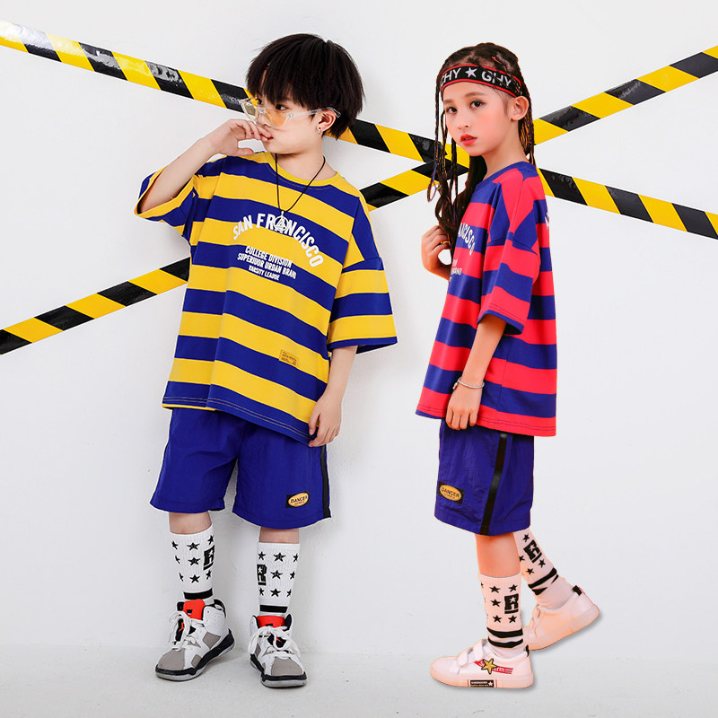 Children's Street Dance Out of Service Men's and Women's Summer Great Edition Loose Short Sleeve Hip Hop Suit Kindergarten Group Trend Class Clothes