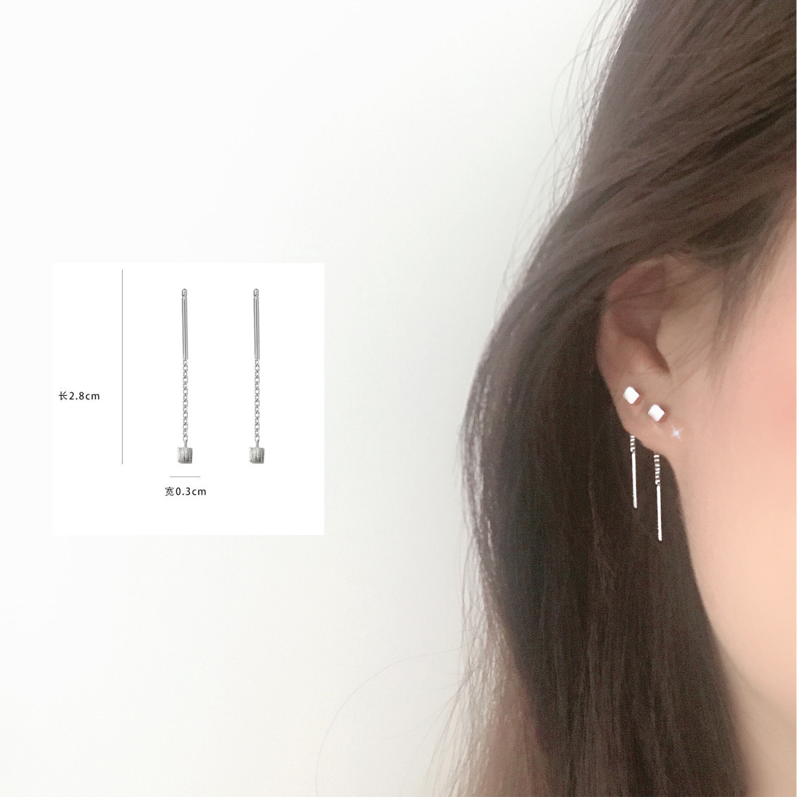 925 Silver ear nail wire girl 2021 new mass temperament is compact and refined cold wind ear crash with ear holes