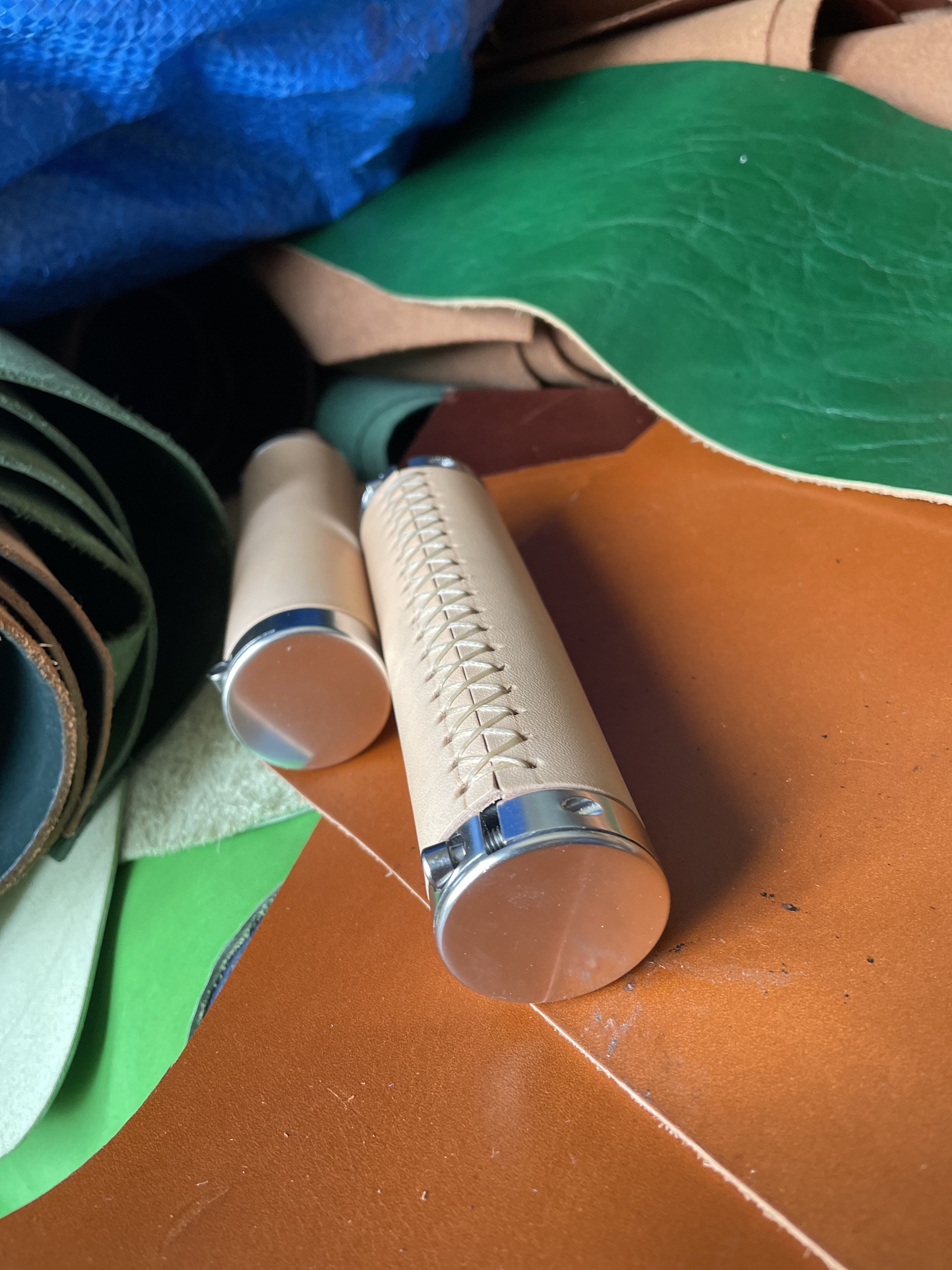 Single original color white top layer vegetable tanned cowhide brompton handlebar cover cross-border custom length 70-130