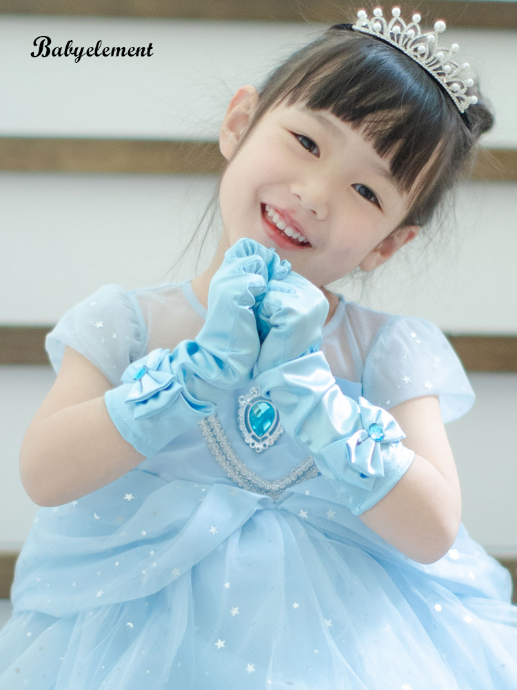Children's jewelry Frozen Elsa Princess Gloves Girls Long Tube bow Little girl baby five fingers blue