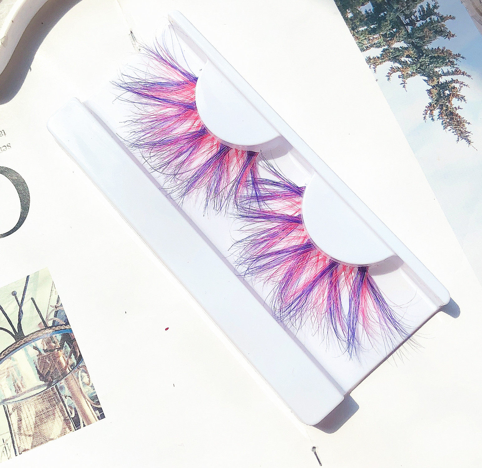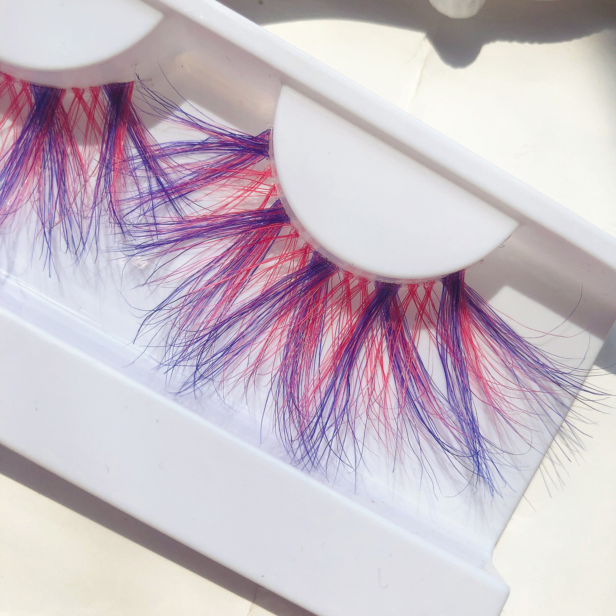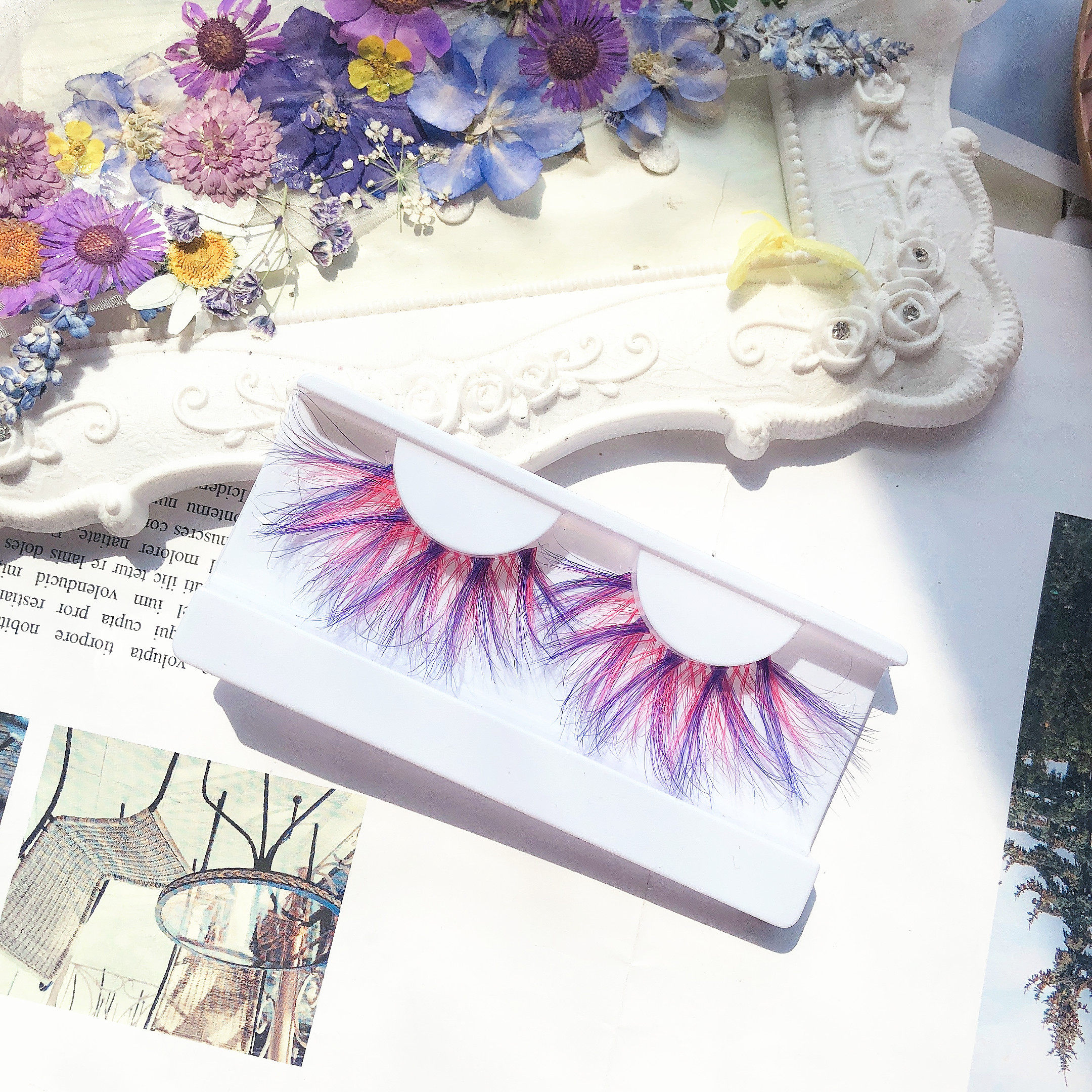 Exaggerated super long 25mm false eyelashes dance makeup creative makeup graduation works design sense pink purple mixed color eyelashes a pair