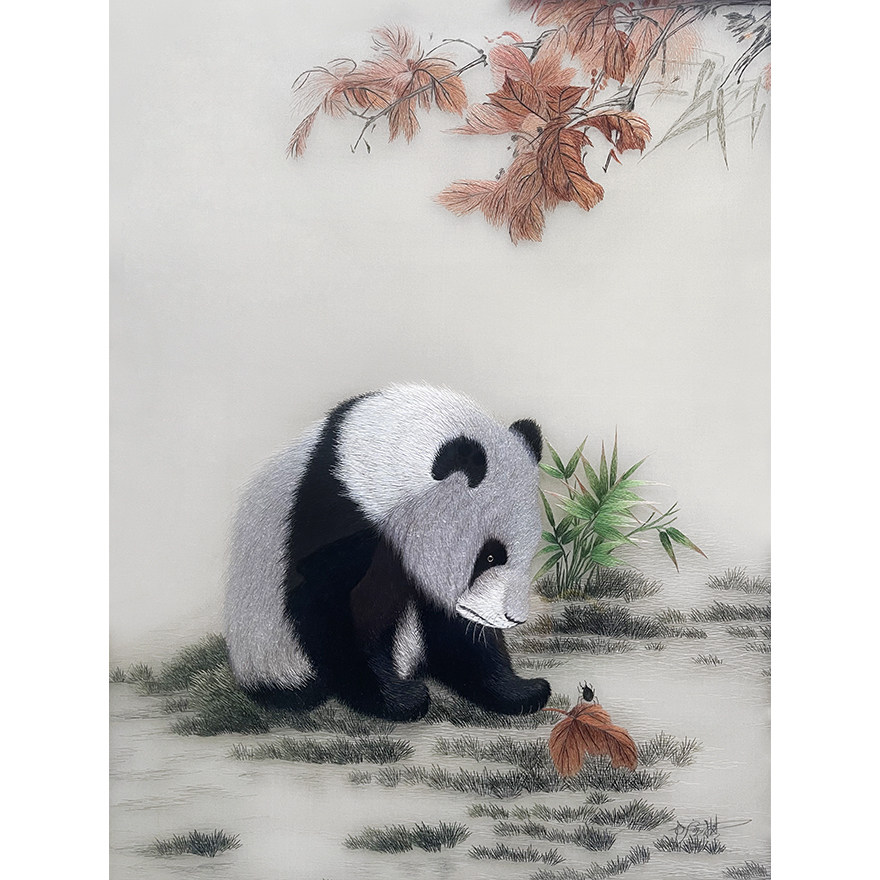 (Boutique Su Embroidery) artisan embroidery "Panda" Home Residence Decoration Hanging Painting Embroidery Genuine Silk