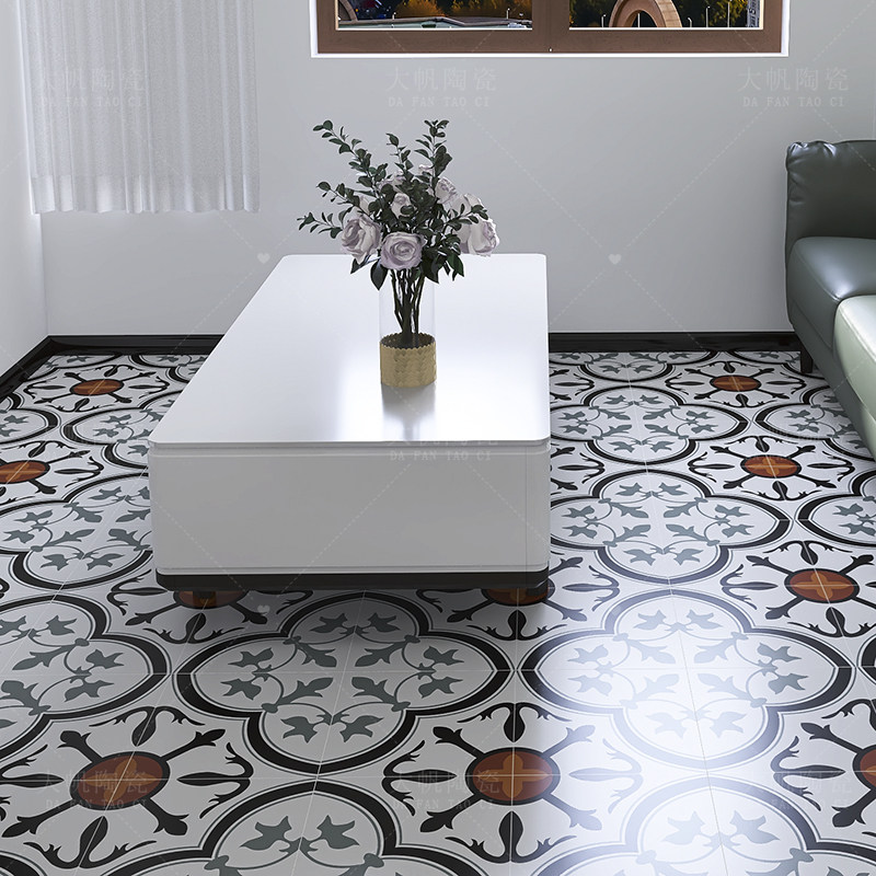 Retro mosaic tiles catering milk tea chain store non-slip floor tiles bed and breakfast terrace porch background flower wall tiles 30