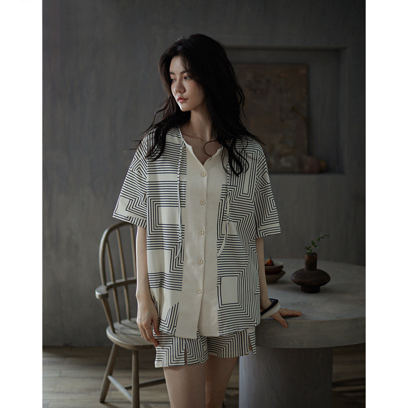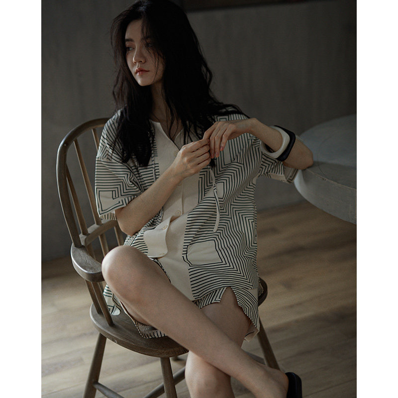 Pajamas women's summer thin section pure cotton short-sleeved home clothes 2021 new fashion stripes women's spring and summer two-piece set