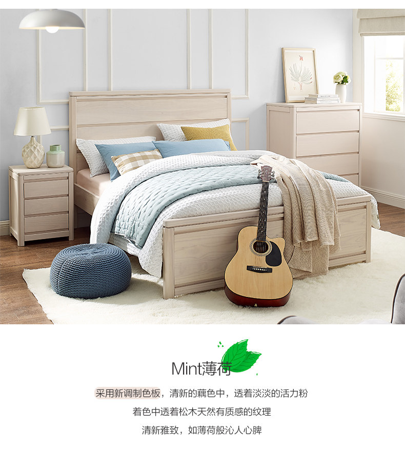 Ximengbao solid wood children's bed modern minimalist double bed pine bed solid wood bed bedroom furniture mint light color - Taobao