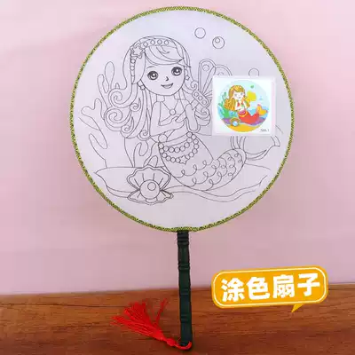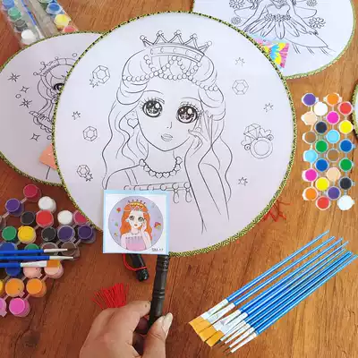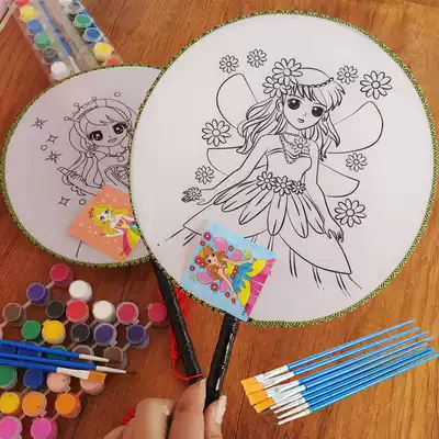 Color fan children's hand graffiti diy Material Group fan kindergarten creative beauty Palace fan stall painting