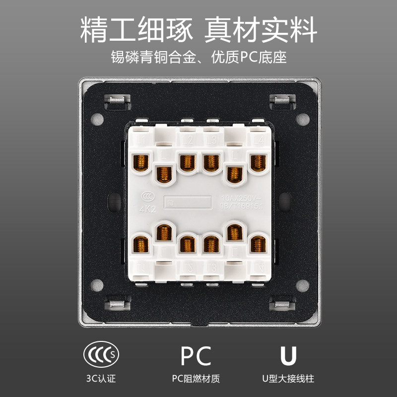 International Electrician 86 Type Concealed Home White Large Board Four Open Double Cut Wall Switch Double Switch 4 Four Light Switch