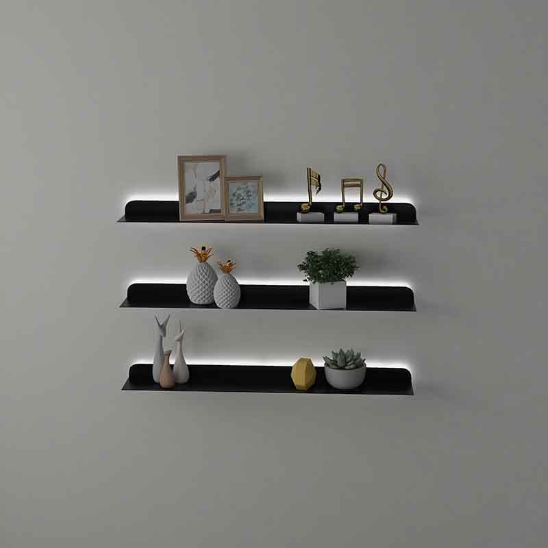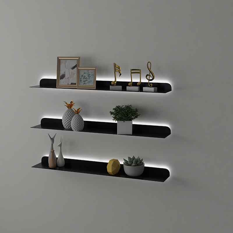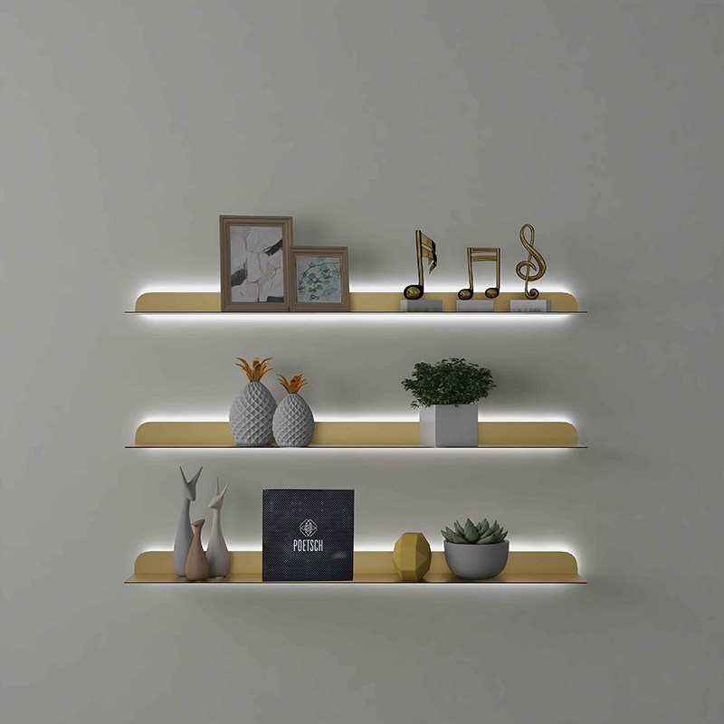 Brief Nordic Luminous Wall Shelf Bookshelf Wall-mounted Iron Art Wall Division Living-room Lined Plywood Show Shelf