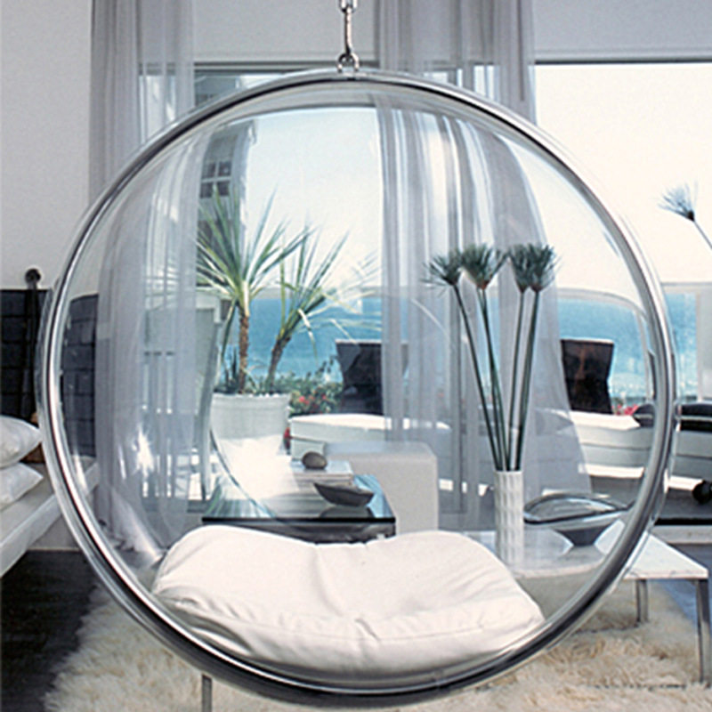 Nordic in acrylic transparent glass ball swing cradle outdoor home floor-to-ground stent hanging space chair