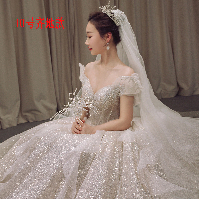 Toast suit rents 2023 new bride married a word shoulder drag tail dress star wedding dress rental summer