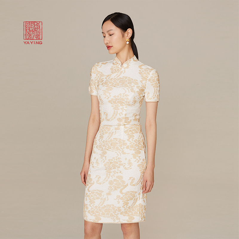 China Ya Ying women's national wind stand-up collar short-sleeved slim cheongsam style dress 2021 spring and summer new 4526A