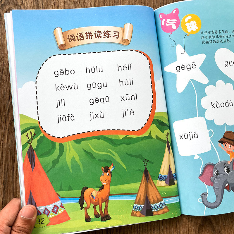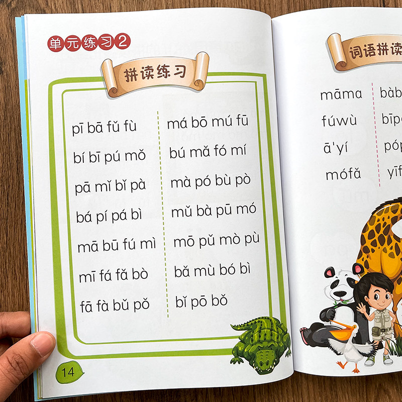 Full set of 2 Chinese characters without Chinese characters Read First Grade Kindergarten Pinyin Parquet Read Exercise Book Language Vocal Mother Rhyme