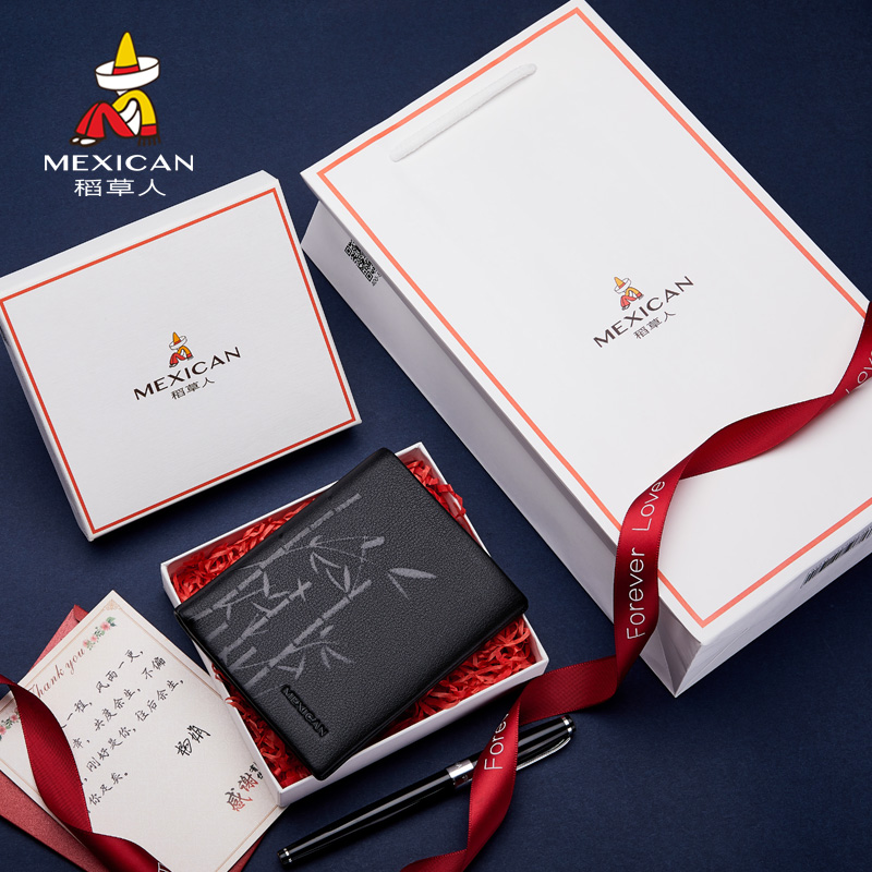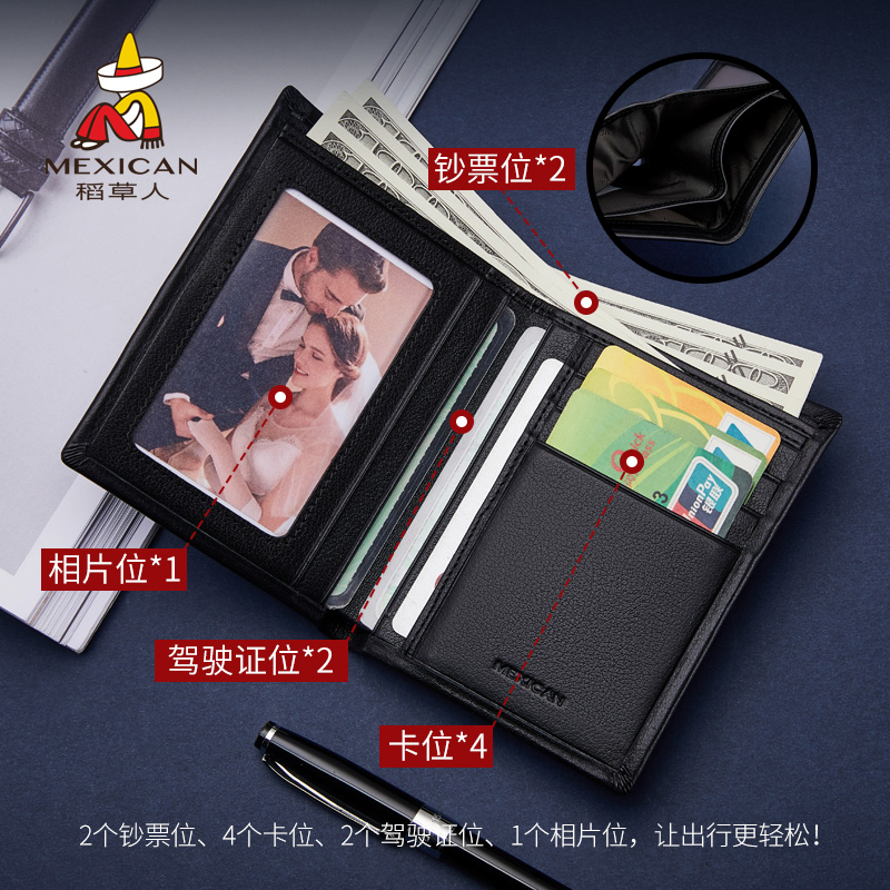 Rice straw man's man's wallet genuine leather 2021 new fashion minima portable short money clip leather clip men
