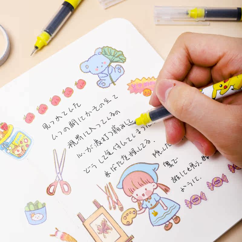 Cute cartoon straight liquid neutral pen girl heart 0 5mm black pen high-value ins water pen student signature pen