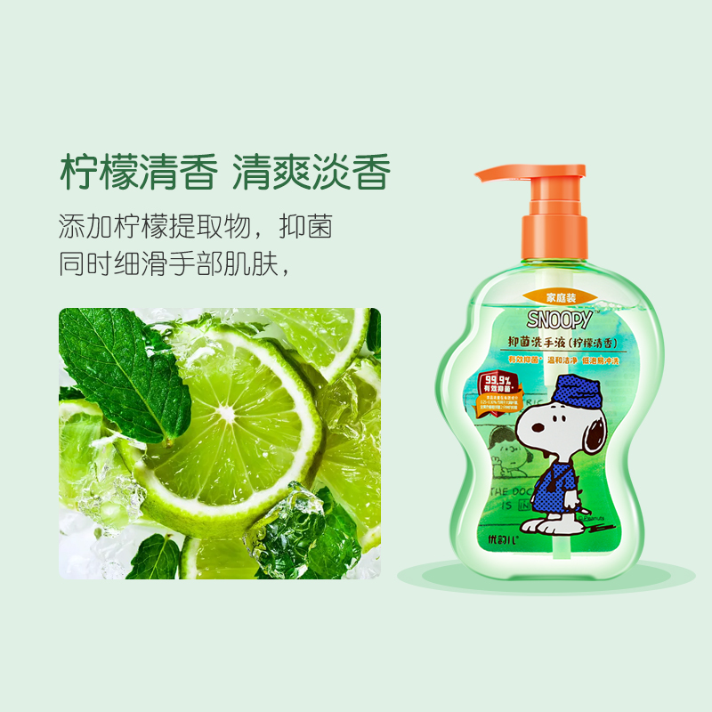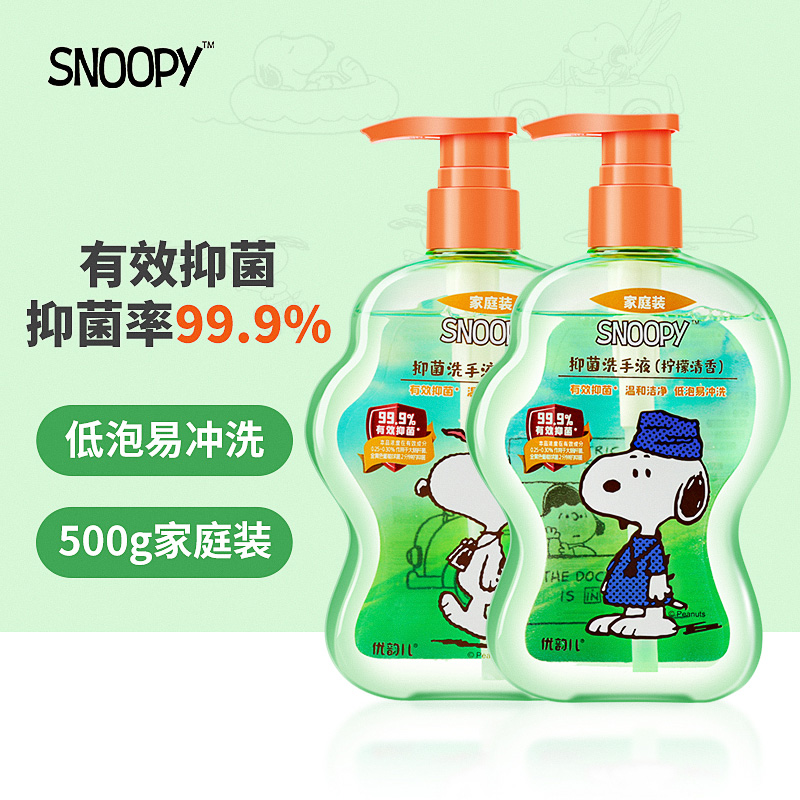 SNOOPY Snubi bacteriostatic handwashing liquid baby wash hands and nourishes children's students Home clear fragrance type Easy to flush
