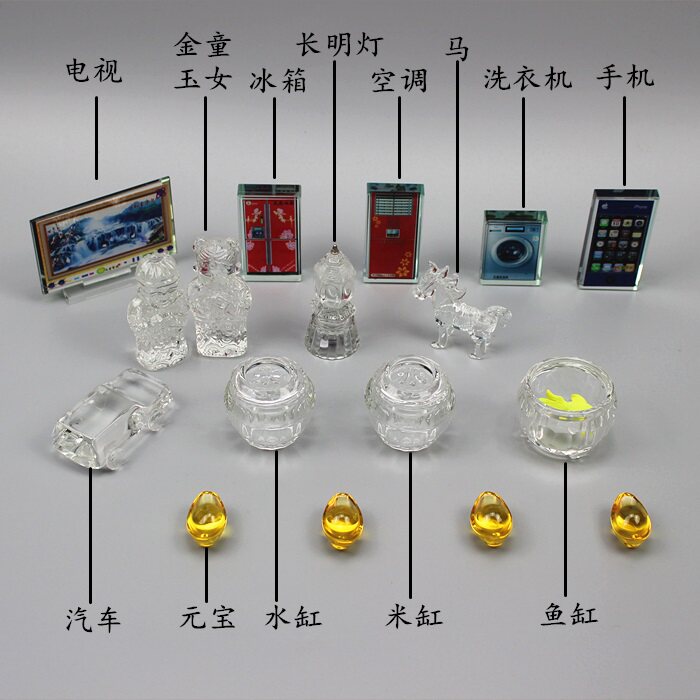 Cemetery tomb buried with burial funeral supplies full set of ashes urn small ornaments golden boy jade female ingot set