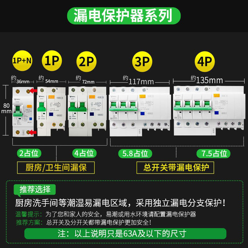 Bull circuit breaker open air switch with leakage protector household 220v leakage protection 63a main gate household 32a