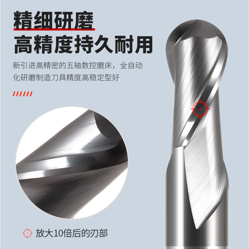 68-degree 2-edge ball head tungsten steel milling cutter hard alloy ball head knife P20 heat treatment quenching material special ball milling cutter