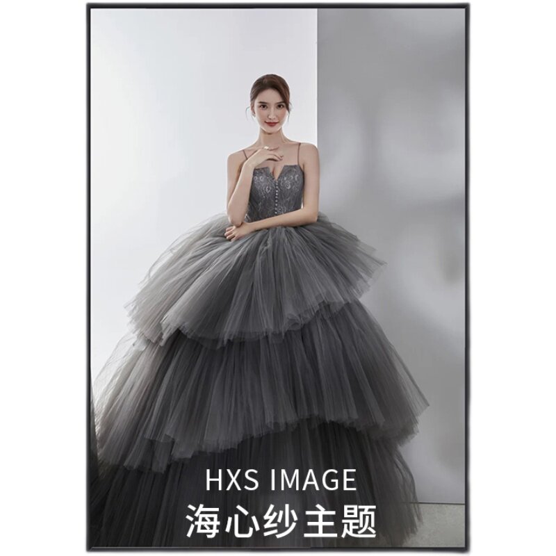 French New Style Themed Gray Hanging Wedding Dragon Sension Photography Real dress