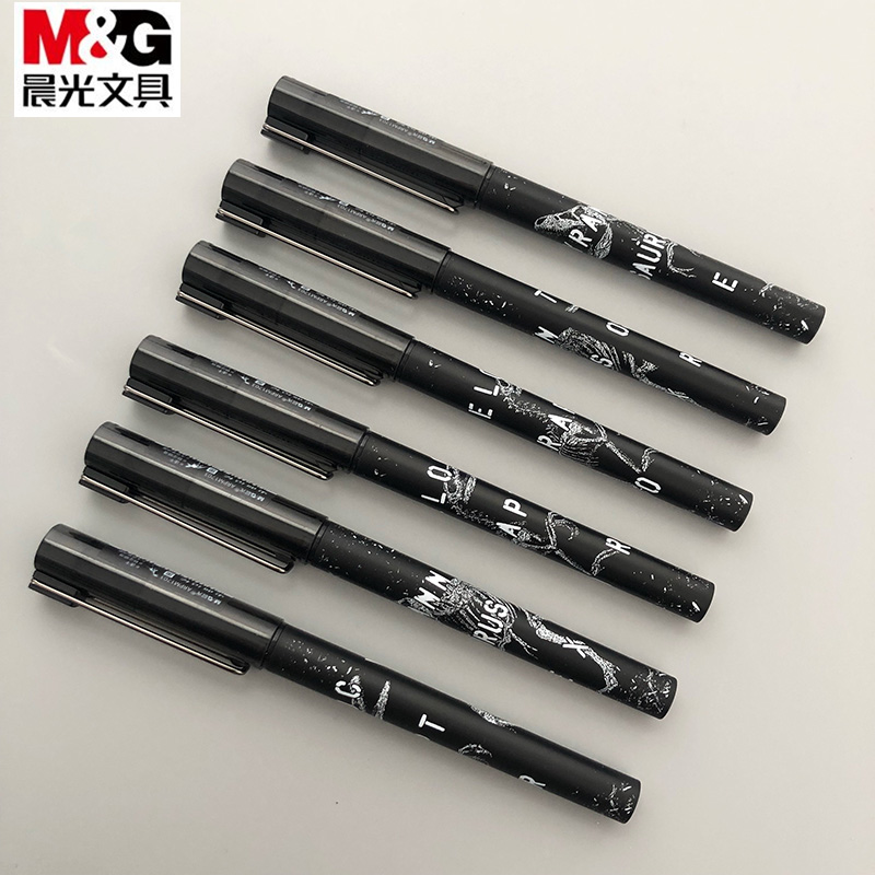Morning light prehistoric memory dinosaur fossils straight liquid water-based ballpoint pen full needle tube gel pen Students with creative retro water-based pen signature pen pull cap M1703 black 0 5
