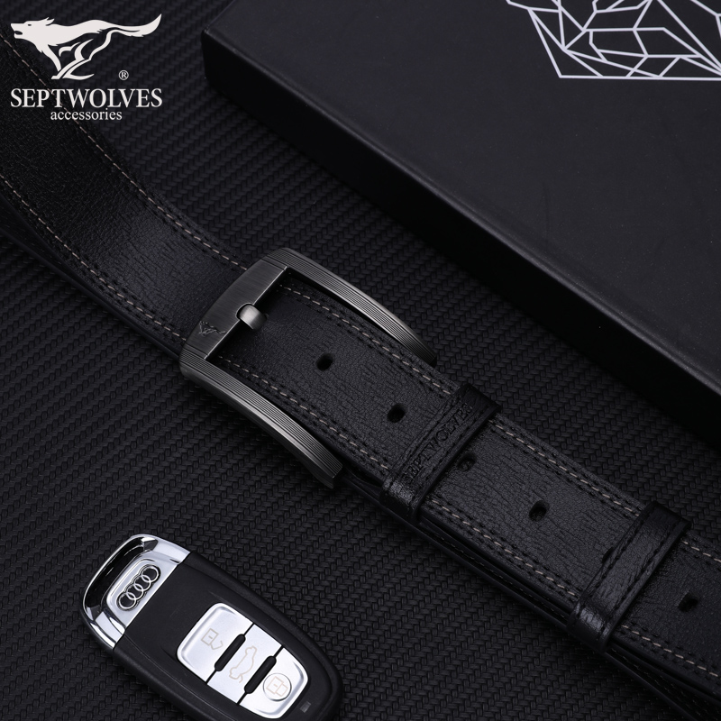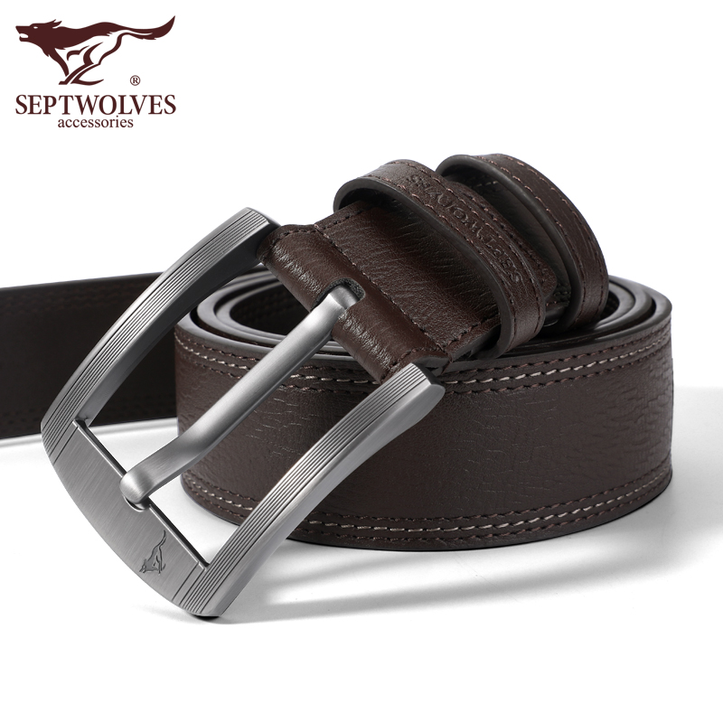 Seven Wolves Men's Needle Buckle Leather Strap Leather Pure Bull Leather Upscale Nameplate Middle-aged Belt Tide Young Man Pants Strap